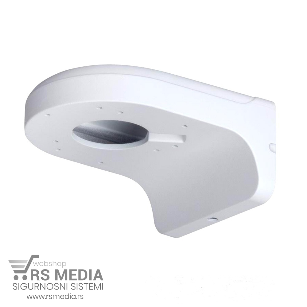 Dahua zidni, ugaoni nosač za eyeball (dome) kamere. Ovaj nosač kamere je napravljen za montažu na zid a u kućištu ima dovoljno mesta za smeštanje video baluna kao i svih BNC i DC konektora. Kućište je otporno na zapljuskivanje a spojevi zadihtovani silikonskim gumicama. U kompletu se dobijaju tiplovi, šrafovi i mali inbus ključ za montažu. Kućište je aluminijumsko a nosać kućišta čvrst i robusan. Raspored rupa je takav da se na ovaj nosač mogu montirati i kamere koje imaju različit prečnik i broj rupa za montažu. Više o artiklu možete pročitati sekciji u „Dodatne informacije“.