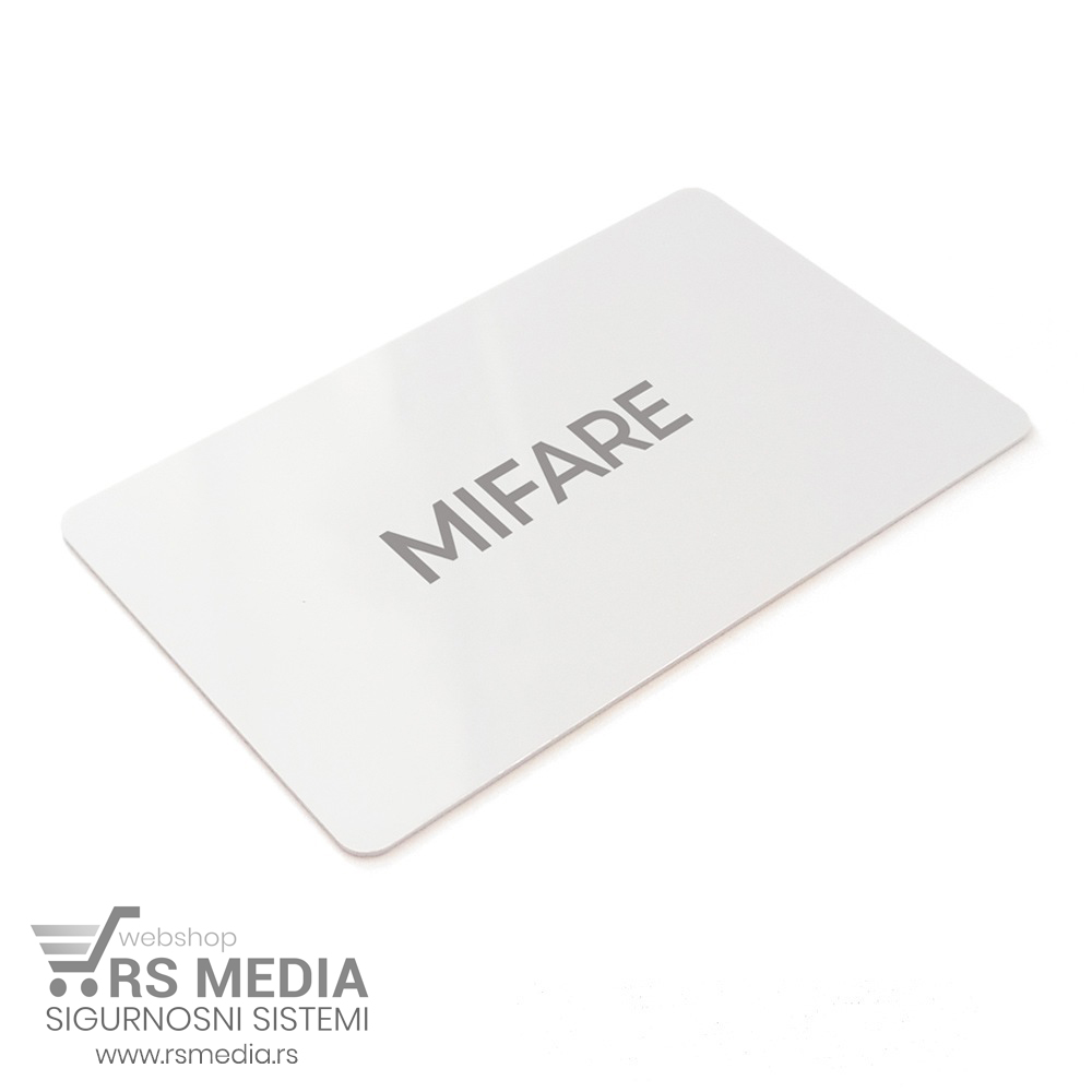 Mifare kartica za otvaranje električne brave 13.56MHz. Kartica-ključ sa RFID opcijom, služi kao ključ za otvaranje brave putem čitača RFID kartica. Ključ se prethodno mora dodeliti određenoj bravi kako bi ga brava mogla koristiti. Za razliku od standardnih RFID kaftica, MIFARE kartica ima veću memoriju i naprednija je u svakom smislu. Kartica je prazna bez natpisa ali ima svoj kod.