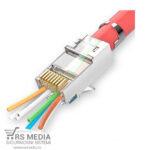RJ45 konektor za povezivanje UTP kabla punog poprečnog preseka, kategorije 7 sa uređajem. Prednost ovog modela RJ45 konektora je dvostruka: Klin koji se urezuje u žicu je trostruko smaknut i ostvaruje bolji kontakt i sa wall (pun poprečni presek) kablovima. Druga prednost ovog konektora je ta što poseduje umetak za pravilno postavljenje parica koji se umeće u središte konektora. Treća prednost ovog konektora je u tome sto sve žice prolaze kroz konektor a višak se odseca (pogledajte slike). Za montažu ovog konektora potrebna su Vam posebna klešta za RJ konektore. Razlika izmedju RJ 45 konektora CAT6 i CAT7 je u tome što konektor CAT6 ima tanje rupe za uvlačenje kabla dok su kod konektora CAT7 rupe šire.