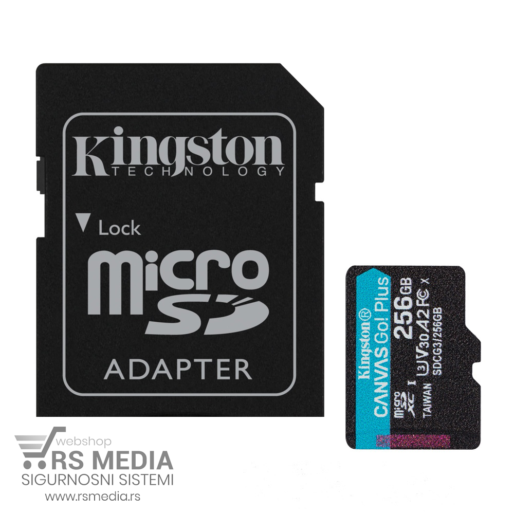 Memorijska kartica Kingston Canvas Select Plus 256GB, 100Mb/s. Kingston Canvas Select Plus microSD je kompatibilan sa Android uređajima i dizajniran je sa A1 performansama. Nudi poboljšanu brzinu i kapacitet za brže učitavanje aplikacija i snimanje slika i video zapisa u više kapaciteta do 512 GB. Moćan u performansama, brzini i izdržljivosti, Canvas Select Plus microSD je dizajniran za pouzdanost prilikom snimanja i razvijanja fotografija visoke rezolucije ili snimanja i uređivanja full HD video zapisa. Kingston Canvas kartice su testirane da budu izdržljive u najtežim okruženjima i uslovima, tako da možete da ih nosite bilo gde sa poverenjem da će vaše fotografije, video snimci i datoteke biti zaštićeni. Više o artiklu možete pročitati sekciji u „Dodatne informacije“.