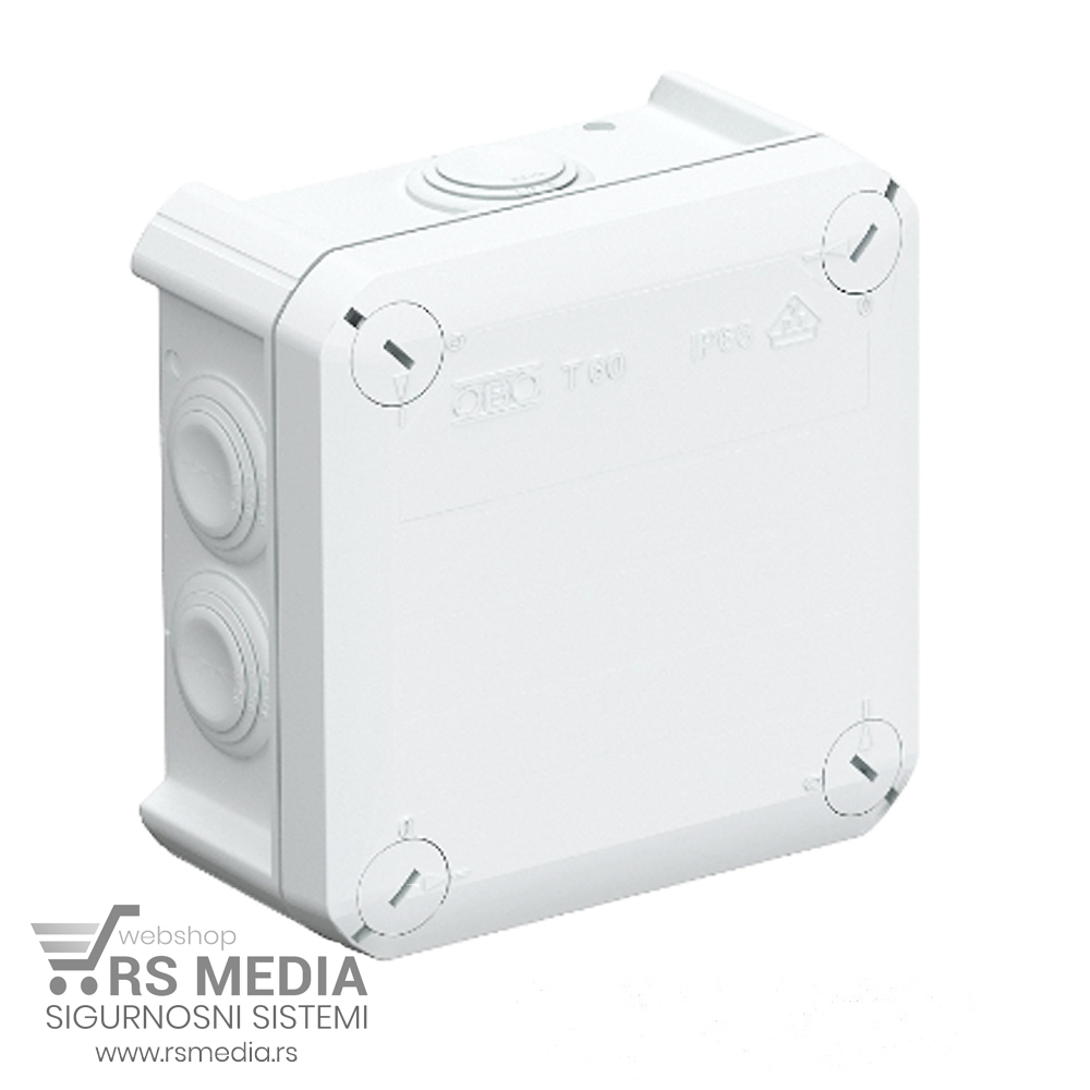 OBO Bettermann-kutija (dozna) Nemačkog proizvođača izuzetnog kvaliteta napravljena od mekane plastike koja ne puca. Model T60 je nadzidna kutija za elektro kablove, razvodne panele ili za smeštanje kablova i konektora kod kamera video nadzora. Ovaj model kutije poseduje IP 66 zaštitu i izuzetno je jednostavan za montažu.