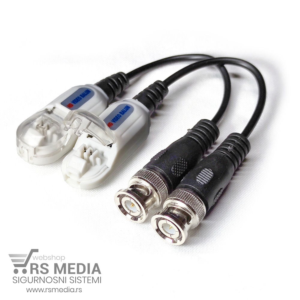PRIKAZANA CENA JE ZA PAR. Generalno govoreći, video baluni služe za prenos slike, zvuka i napajanja od kamere do DVR-a preko UTP kabla najčešće. Neki Video baluni prenose samo sliku, neki i sliku i napajanje a neki i sliku i napajanje i zvuk. U zavisnosti od konstrukcionog rešenja samog baluna, neki se povezuju preko RJ45 konektora, neki na šraf a neki na žabice.